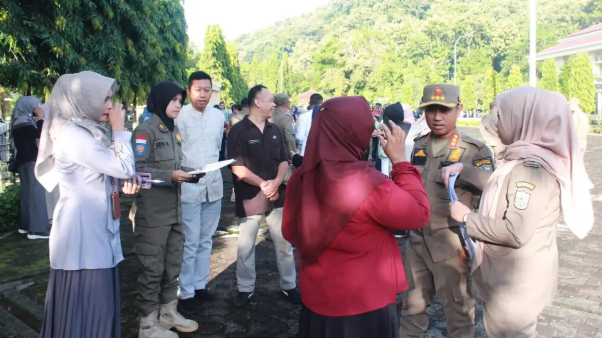 Pada hari pertama kerja, Petugas Satpol PP Kota Banjar melakukan gerakan disiplin daerah (GDD) terhadap kehadiran ASN saat gelar apel gabungan di halaman Setda Kota Banjar.