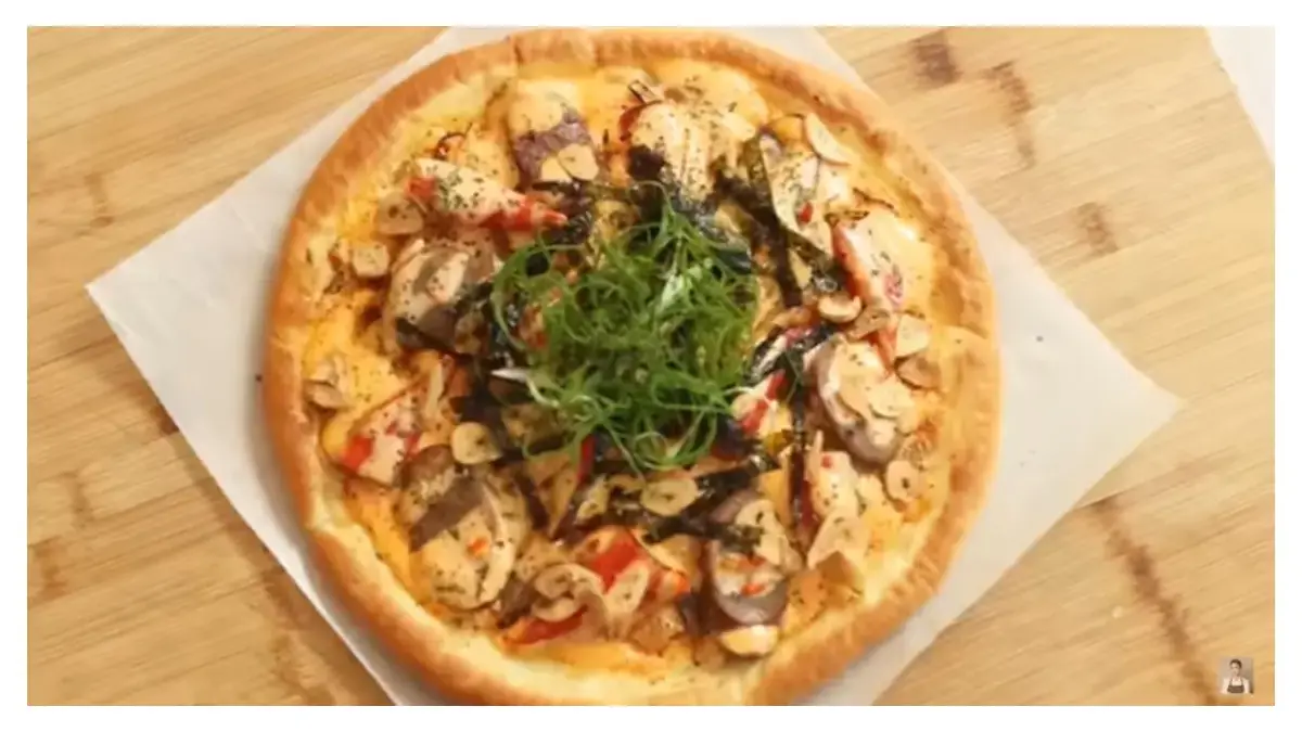 Untuk saus mentai, jika terasa terlalu kental, Chef Devina menyarankan menambahkan sedikit air agar teksturnya lebih creamy dan mudah diaplikasikan ke pizza.